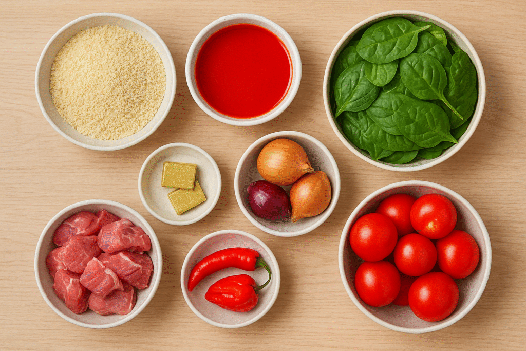 - Fresh spinach, ugu, or bitterleaf adds authentic taste and nutrition to the soup.