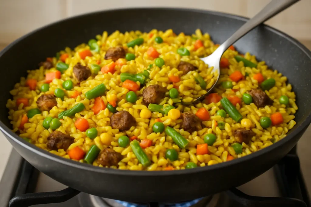 Your fried rice becomes soggy when the rice is too soft, there is too much water, or the heat is too low. Always parboil lightly, drain well, and fry on medium to high heat.